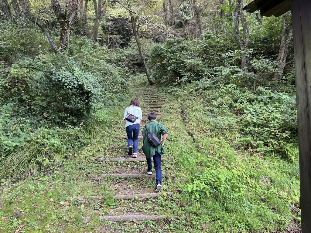 冠木門から遊歩道が整備されている。今回は妻のナオに加え、息子のユウも付いてきてくれた。