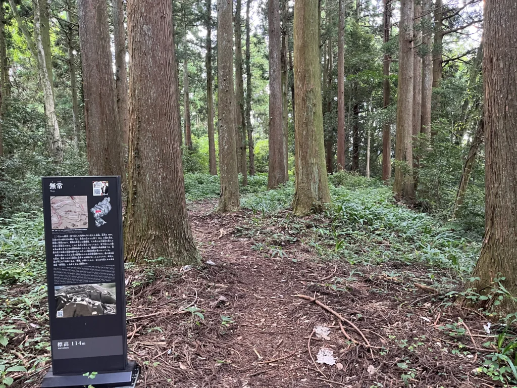 本丸の南側を守る曲輪「無常」。語源は、城の中心を指す「実城」が転じたもの、あるいは寺院の「無常堂」から来たもの、との説がある。曲輪の下には畝状竪堀がある。