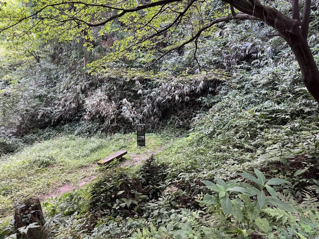 鐘楼堂跡の北側、堀切を介した先にある「安室屋敷跡」。安室とは、家督を譲って隠居した人を指すという。