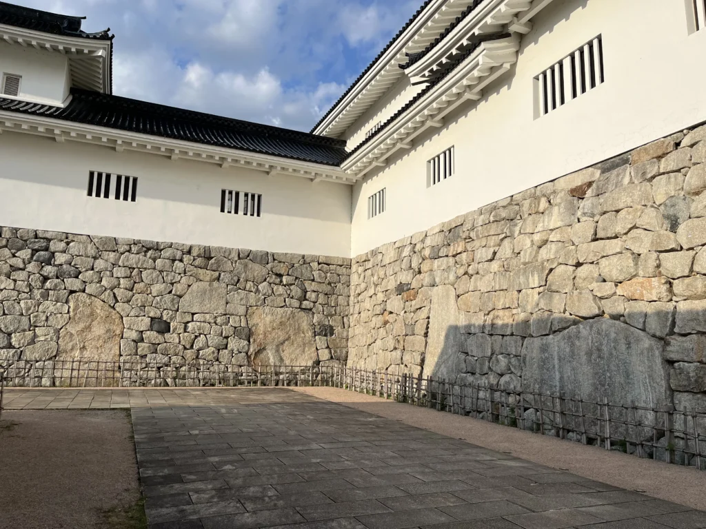 本丸枡形虎口。大きな鏡石が4つも埋め込まれている。