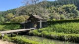 増山城の駐車場と増山陣屋。陣屋はトイレ完備の資料室兼休憩所だが、営業時間は8時半から17時で、時間外は施錠されている。駐車場はいつでも停められるもののこの周辺に街灯はないため、夜間早朝の運転には注意が必要だ。