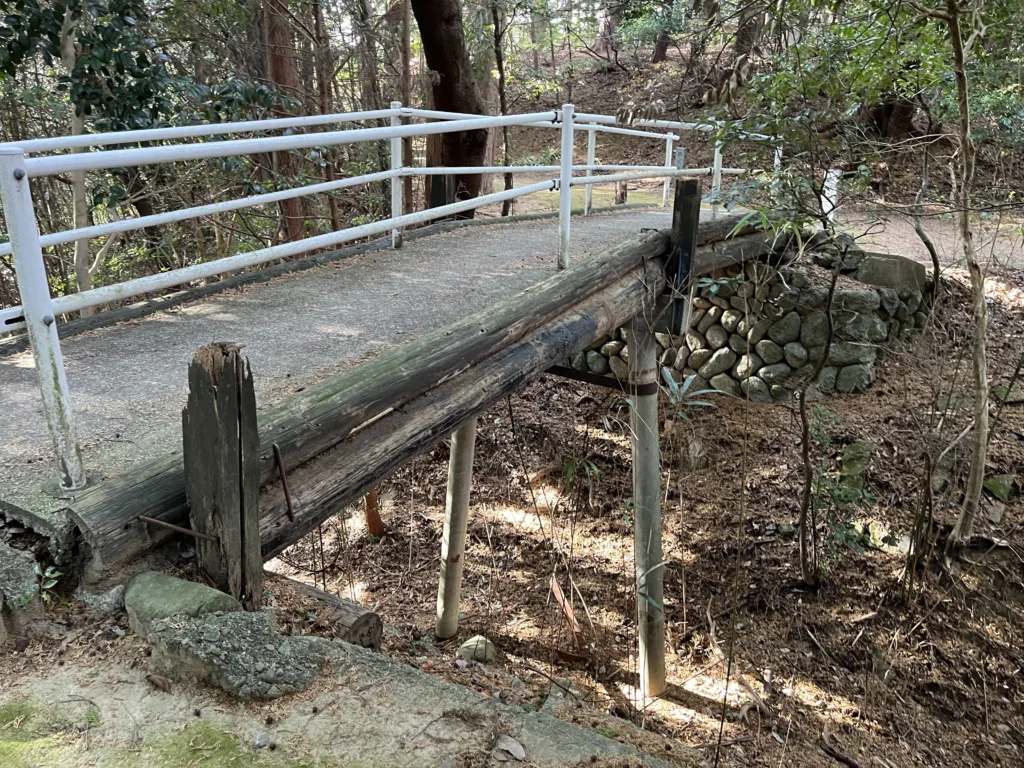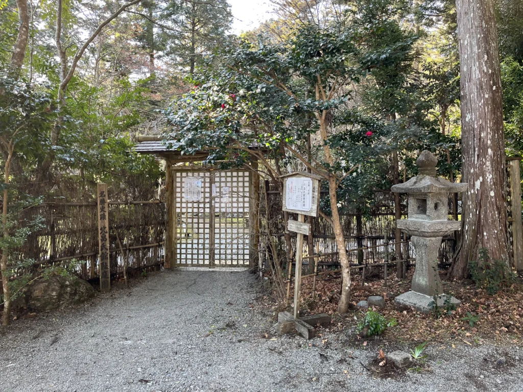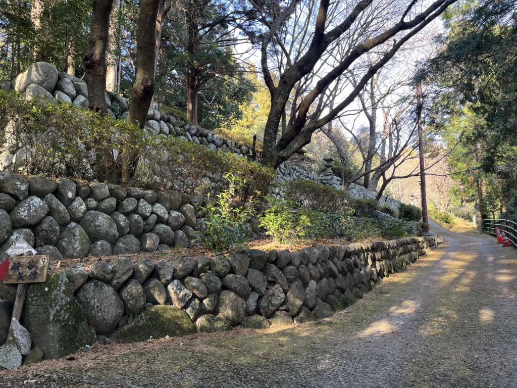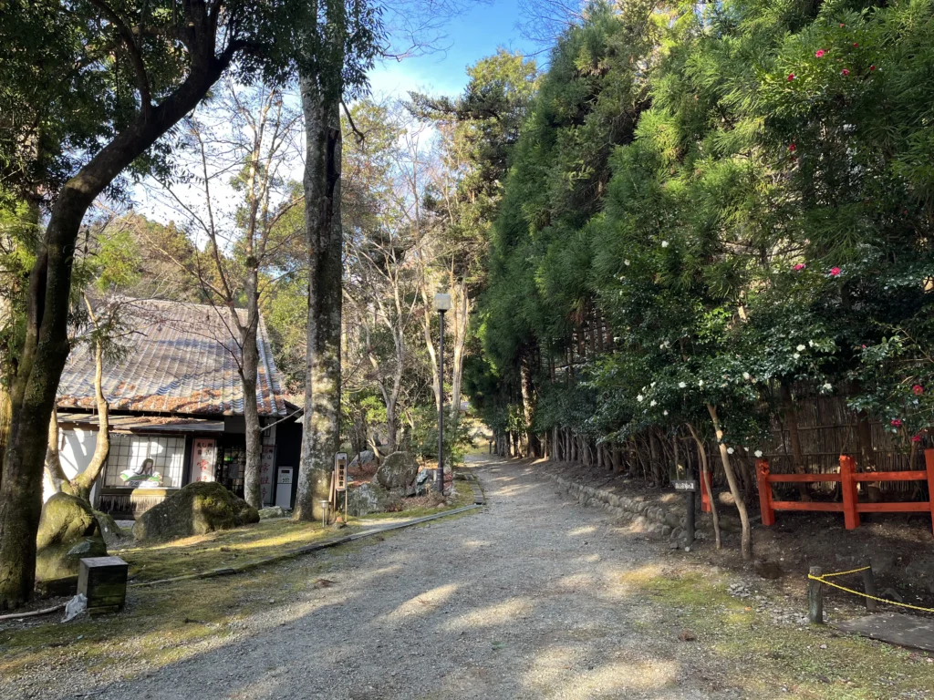 一ノ鳥居と橋を渡った先の脇道は、霧山城へと続いている。写真左側の建屋はお食事処「雪姫亭」だが、残念ながら休業中だった。店名となっている“雪姫”は、北畠具教の娘で織田信雄の正室となった女性だ。雪姫はニックネームで、古文書では「千代御前」という名前で登場する。肌が雪のように白かったことから雪姫と呼ばれたという。