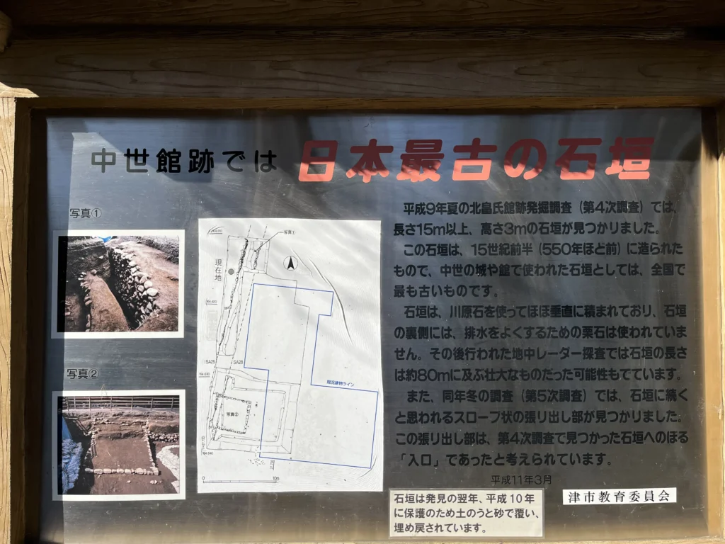 中世館跡では日本最古の石垣?? 言っている意味はよく分からないが、貴重な遺構であることは間違いない。