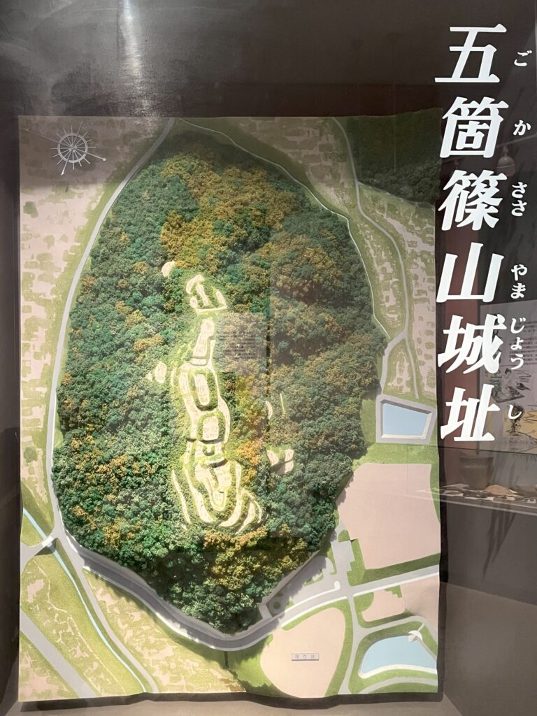 多気町立勢和図書館にある五箇篠山城の巨大ジオラマ。立てることで省スペース化が出来ている。