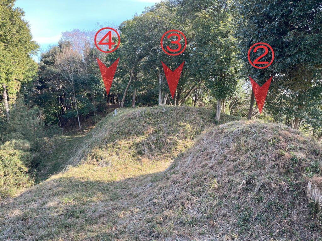 二の曲輪から四の曲輪が見える。その先に最後の五の曲輪がある。