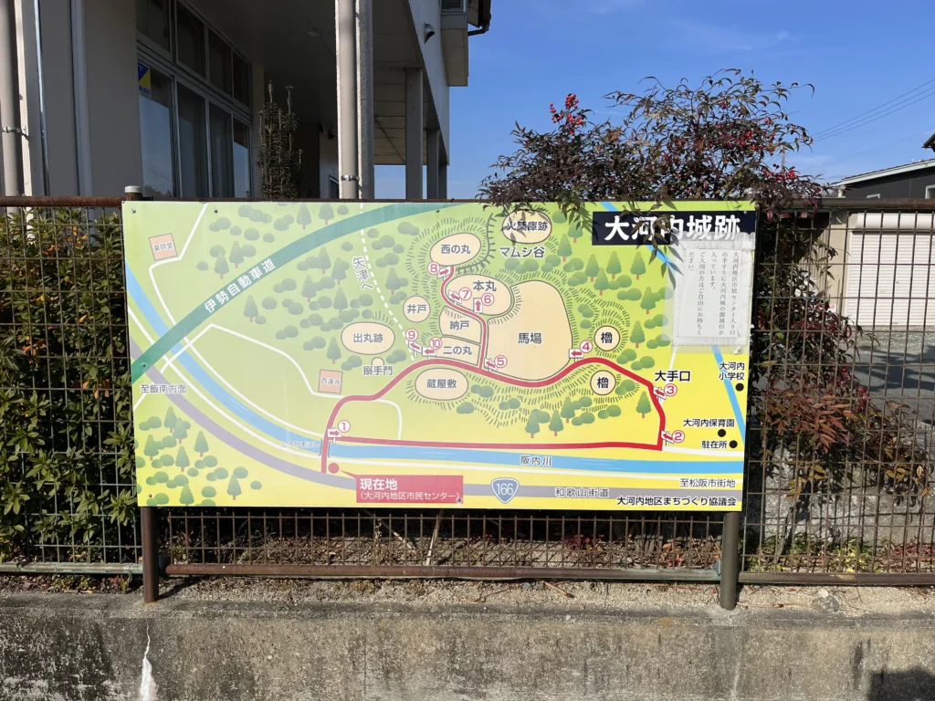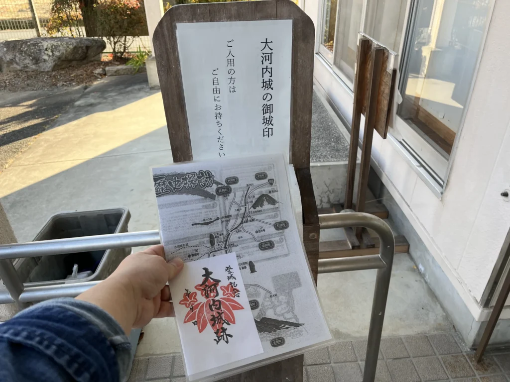 車は大河内地区市民センターの広い駐車場に停めさせていただいた。市民センターには、無料の御城印と歴史探訪マップが置かれていた。(ありがとうございました。)